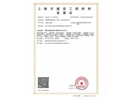 杭州市建筑工業(yè)化產(chǎn)業(yè)基地登記證