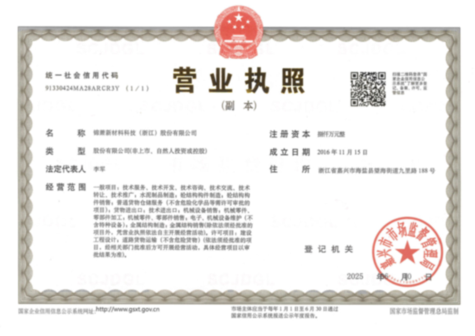 錦蕭新材料科技(浙江)股份有限公司
