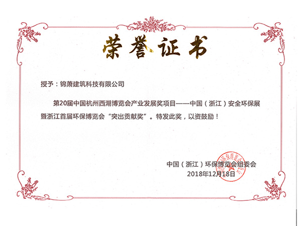 中國(guó)安全環(huán)保展暨浙江首屆環(huán)保博覽會(huì)突出貢獻(xiàn)獎(jiǎng)