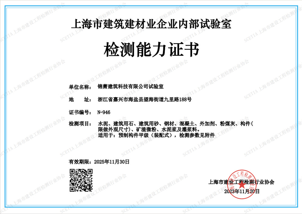 上海市建筑建材業企業內部試驗室檢測能力證書