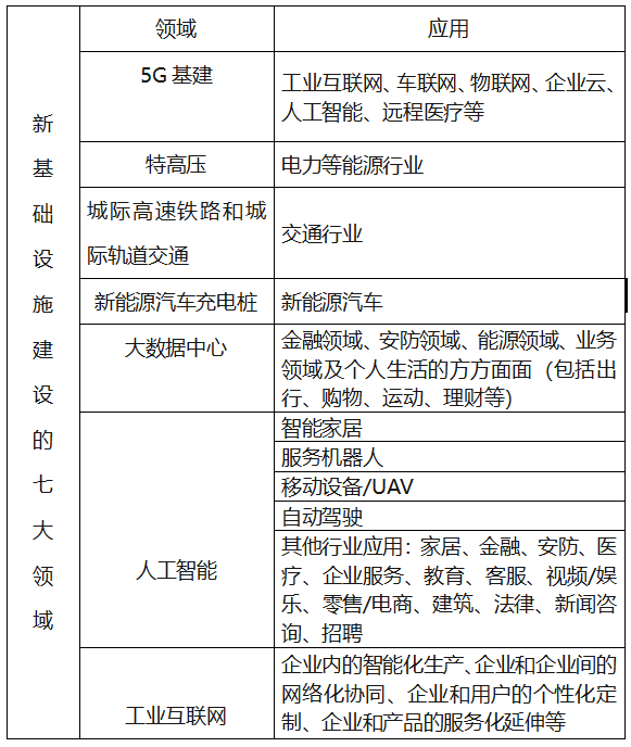 附表:新型基礎(chǔ)設(shè)施建設(shè)的七大領(lǐng)域