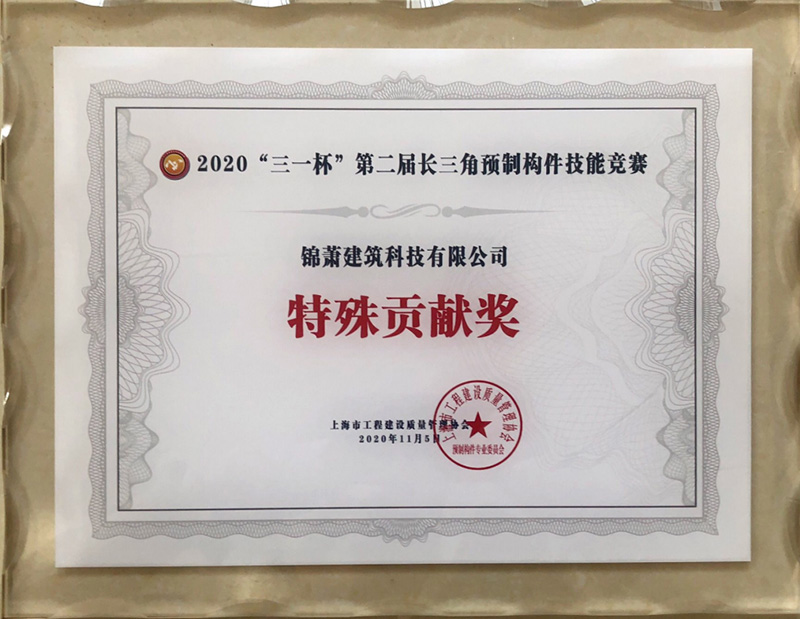 2020年11月8日下午,“三一杯”第二屆長三角裝配式預(yù)制構(gòu)件職業(yè)技能競賽總決賽在浙江三一筑工科技有限公司落下帷幕,來自上海、江蘇、浙江、安徽三省一市分賽區(qū)晉級的21支參賽隊角逐本屆競賽總冠軍。經(jīng)過三天緊張的理論及實操比賽,錦蕭科技參賽隊?wèi){借優(yōu)異的表現(xiàn),勇奪大賽亞軍。