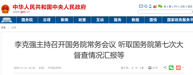 國務院總理李克強11月11日主持召開國務院常務會議,聽取國務院第七次大督查情況匯報,確保政策落實,更好發揮促進經濟穩定恢復的重要作用;決定在浦東新區開展市場準入“一業一證”試點,在全國大幅壓減建設工程企業和測繪資質并加強監管,更大激發市場活力,為擴大消費和有效投資創造條件。