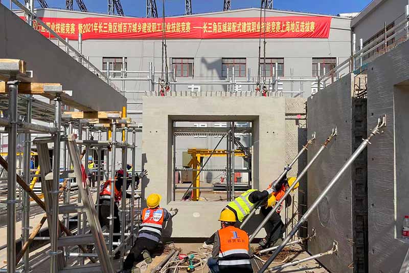 競賽是在上海市住房和城鄉建設管理委員會、上海市人力資源和社會保障廳、上海市總工會等政府主管部門以及長三角區域新型建筑工業化協同發展聯盟具體指導和支持下,由上海市建設協會、上海市建筑施工行業協會、上海市混凝土行業協會、上海市金屬結構行業協會和上海市技師協會聯合舉辦,來自本市裝配式建筑設計、施工、生產等的優秀企業中近80支參賽隊300余名選手參加了本次比賽。