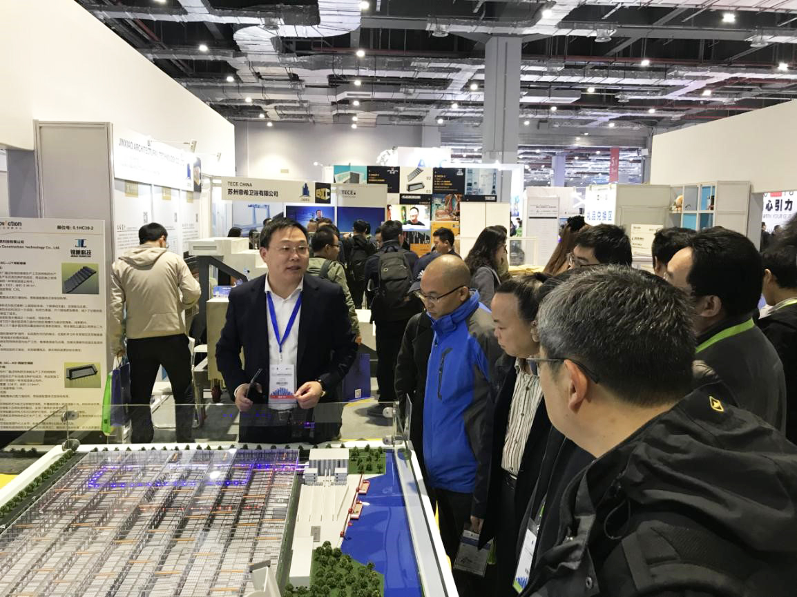 兩次展會(huì),錦蕭科技以最強(qiáng)團(tuán)隊(duì)陣容參與亮相。走進(jìn)錦蕭展區(qū),參觀人氣爆棚,國(guó)內(nèi)外客商絡(luò)繹不絕。公司以混凝土預(yù)制構(gòu)件展品--預(yù)制樓梯、預(yù)制空調(diào)板為媒介,通過廠區(qū)沙盤展現(xiàn),背投宣傳片展映,向所有參觀的領(lǐng)導(dǎo)和觀眾展示了公司在裝配式建筑領(lǐng)域所擁有的技術(shù)實(shí)力及強(qiáng)悍的生產(chǎn)能力。